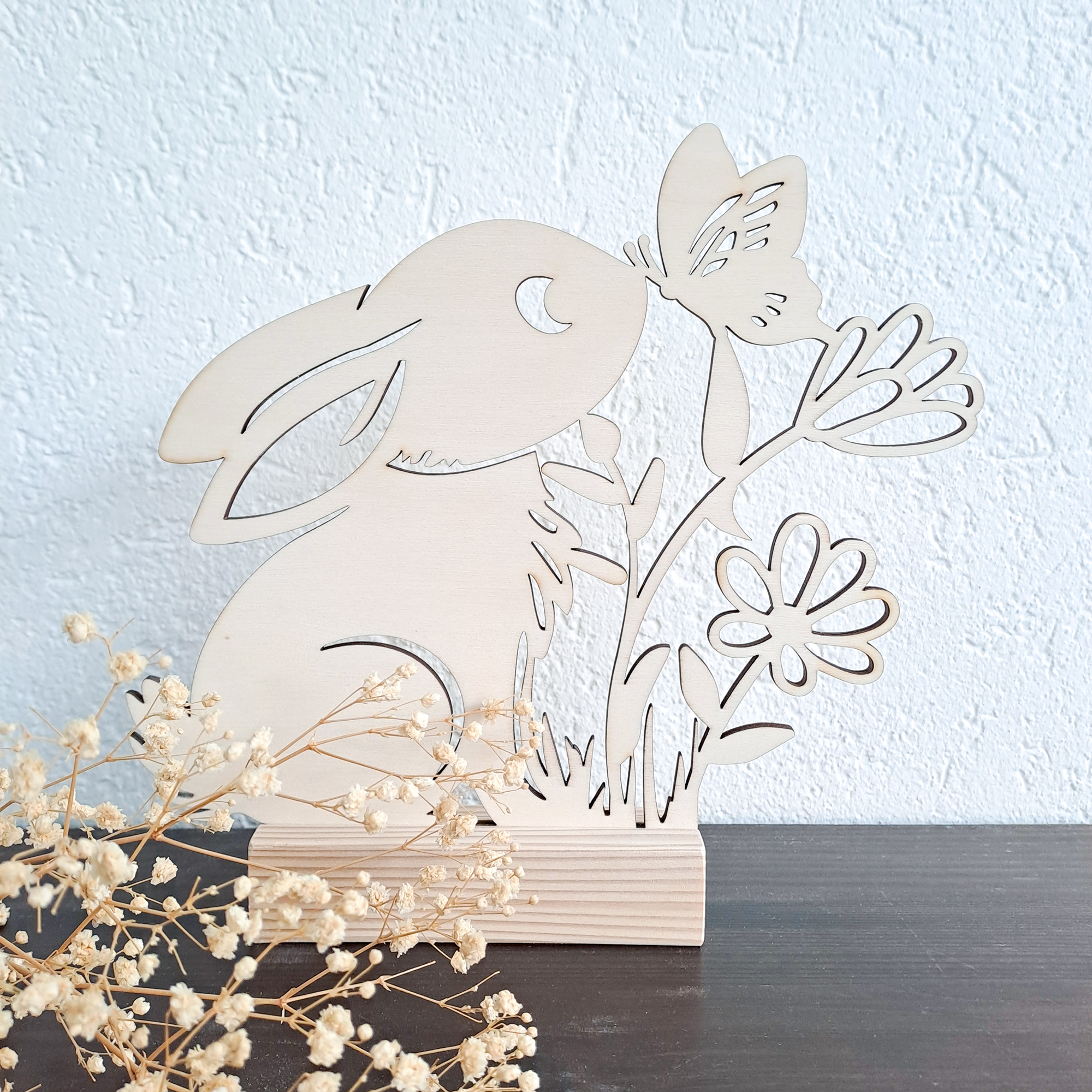 Holzsteller Hase mit Schmetterling